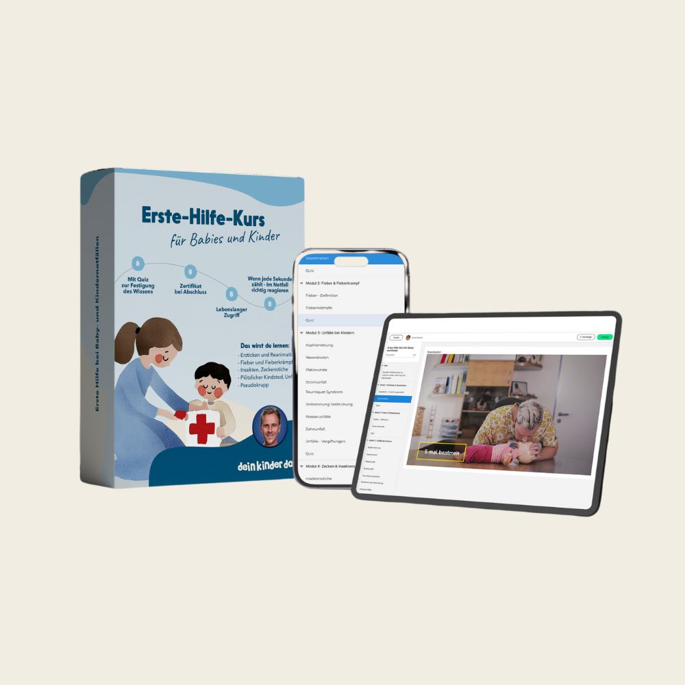 Lerne die wichtigsten Erste-Hilfe-Maßnahmen für Babys und Kinder – einfach, verständlich und jederzeit abrufbar. In unserem Online-Kurs zeigen wir dir Schritt für Schritt, wie du im Notfall richtig handelst, von Reanimation bis hin zur Erstickungsgefahr. Ideal für Eltern, die sicher und vorbereitet sein wollen.