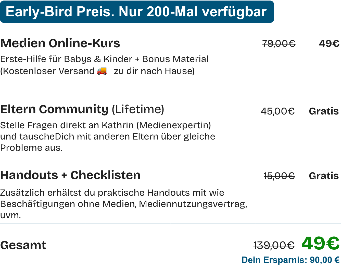 Zugang zur Eltern-Community (Lifetime) mit direktem Austausch und Experten-Input